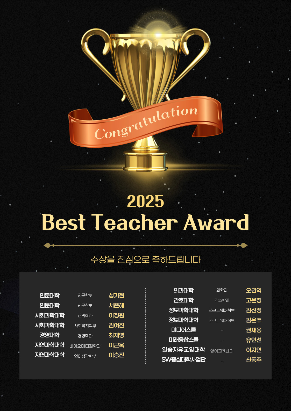 [교육혁신센터] 2025학년도 「Best Teacher Award」 수상자 안내