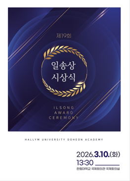 - 3월 10일(화) 오후 1시 30분 한림대학교 국제회의관 국제회의실에서 김중수 前 한국은행 총재(제6·9·10대 한림대학교 총장)에게 제19회 일송상 수여